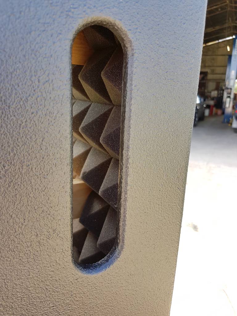 The sound foam is from Clark Rubber, looks nice hiding in there, easier to clean too! Next time I'll spray can black the interior, before the foam goes in.
