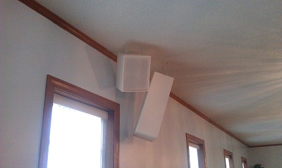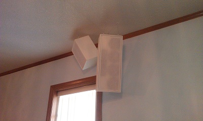 Look at the last picture, "L Main and Sub" and notice the grill in place above the door. As I mentioned, this was an old furnace return duct, but it the only place available to corner load, and it's worked out beautifully. The bass is nice and even throughout the room, except for one minor 80hz room mode bump in the middle of the seating, which isn't a problem.