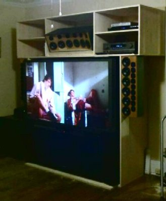 'helped Tom build and install his SLA's and Tuba24. The Tuba is in the far corner powered by an Ashly FET500. We built the entertainment center also.