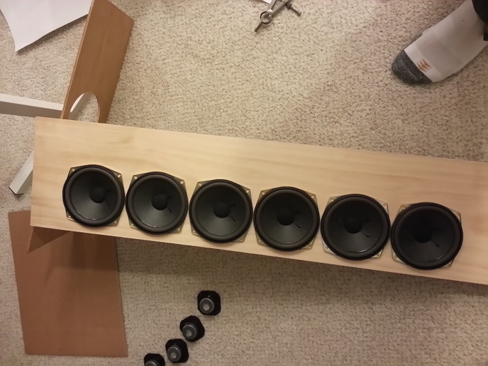 What I did was face the woofers down, dust cap to the woofer panel, line them up and pencil trace around the array. This mocks up the placement so I know how much room I have to work with.
