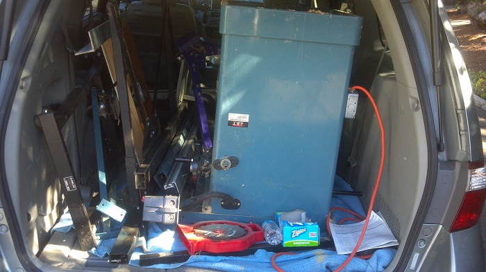 Step 2 - I made the plunge. After scouring craigslist I finally took the plunge on a Jet TLAS-10 - which is essentially a copy of a Delta Unisaw. In fact mine came with a delta mobile base. Also included was a Delta dust collector and an Excalibur sliding table. Tomorrow it is going to get a good cleaning. And, yes, a full size cabinet saw (with the extension table, wings, and fence removed) does fit into a Honda Odyssey.