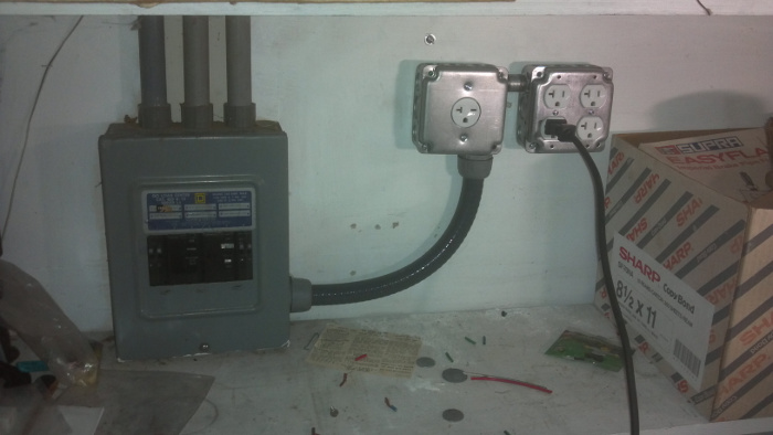 This took a lot longer than it should have, but I finally have a 240V outlet, to power my table saw. There was not a single empty breaker in my house, so I had to buy some twin breakers to free up space in the panel. But it's done. Perhaps I can make some real progress in the next month.