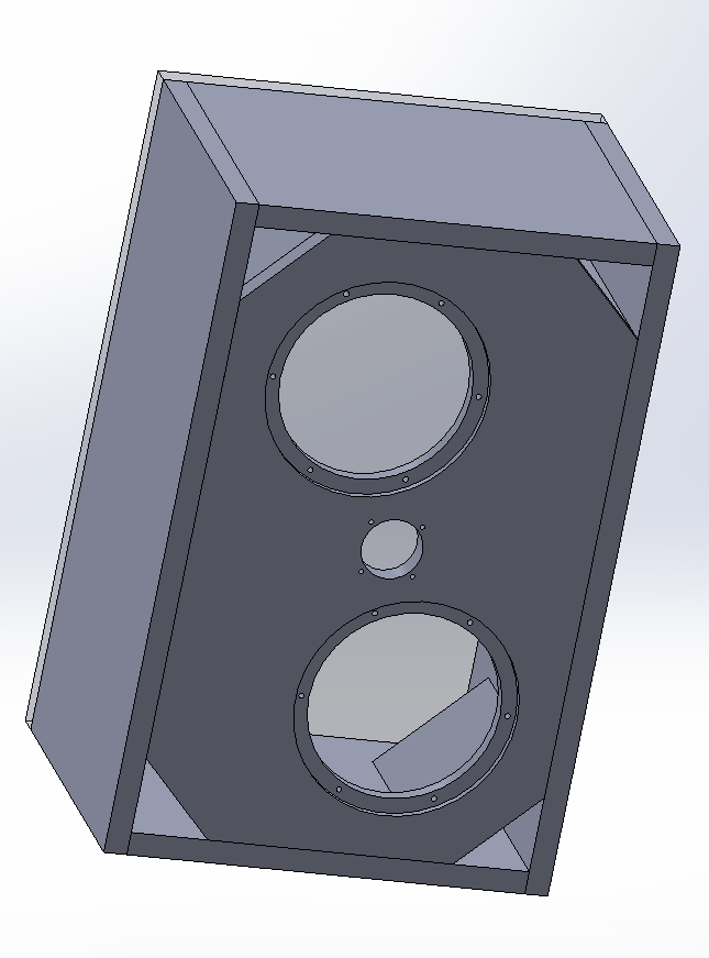 Here are some images (front isometric and rear isometric) of the speakers I'm designing and I was wondering if people had any suggestions as far as construction goes. The plan is to use maple plywood for the whole thing and put real maple strips on the front to hide the end grain of the plywood. I need feedback on whether the ports go too deep (they are the bassbox recommended length but my gut tells me they might be "starved" with the ends being ~2 inches from the back of the speaker).