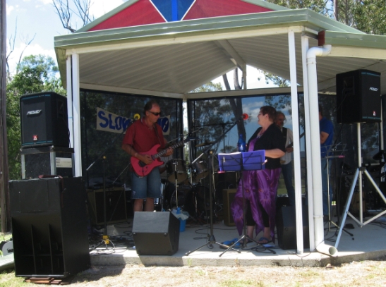 A Peavey CS800 was being used to drive the wedges instead of the usual Phonic max 1500. By the end of the third set I had dialled the sensitivity of the CS back to 12 O’clock and then attacked the EQ. EQ had been set for “nice” sound. Remembering Bills comments about mid hump matching vocal audibility range I checked the GEQ to find cuts in the low mids and odd boosts in the highs. Flicking the GEQ off and dialling a high cut from 10K up and 100 down on the PEQ seemed to get it all back under control.