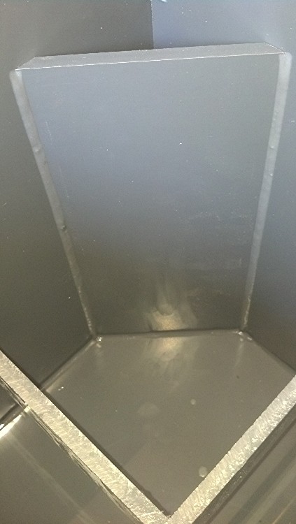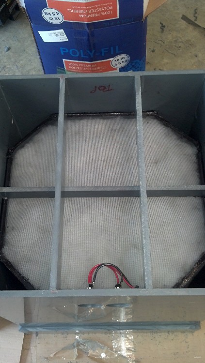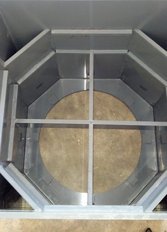 The second layer of fiberglass screen over the poly and caulked in place. (kinda hard to see) It will keep the poly firmly in place in the chamber.