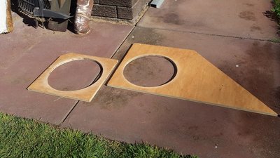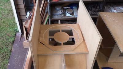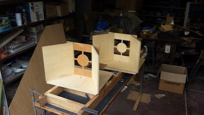 Today I cut the throat reflectors and drilled the holes using the 45' jig. Made life really easy! I then attached the tops to the cabs, taking the time to make sure everything was square. I think I managed to get it within an acceptable tolerance. I prioritized the squareness of the horn panels as I felt they were more important to get right than the outer cab squareness. We'll see how it goes when the sides and back go on I guess