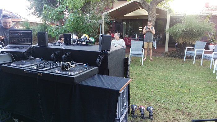 Some photos of the setup before the party started. Very much overkill for a house party, we didn't use much more than 1/3 volume (and that was getting loud) but it was a lot of fun! System sounds so good outside.