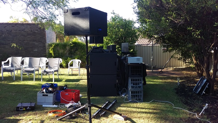 Today we are setting up for a house party with the above configuration, in a friends backyard. Pics and review to follow