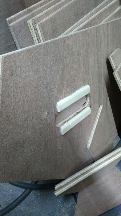 Trying to jig saw 2 thicknesses of this plywood is a no no - the blade bends off due to the hardness of the wood. I managed to fettle the baffle that was on the underside of the one that was marked out, but it was very wonky to start with.