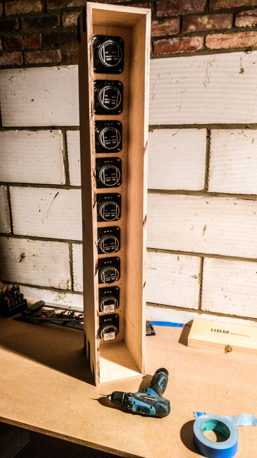 I also made a different choice about the design of the cabinet. I like to see the wood and use the multiplex layers as a style element. I also made it myself a bit more difficult by tilting the front panel by 4°.