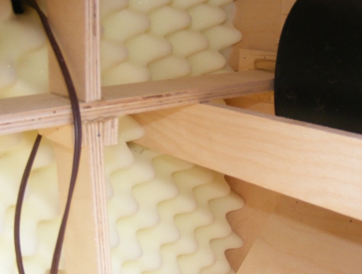 Here's some photos of my 212 box before I close it up. I made a few minor modifications with the bracing. Because the center of balance location for the scoop handles interfered with the upper cross brace, I had to move that one back a little, requiring a slightly angled vertical brace tying the two horizontal braces together.