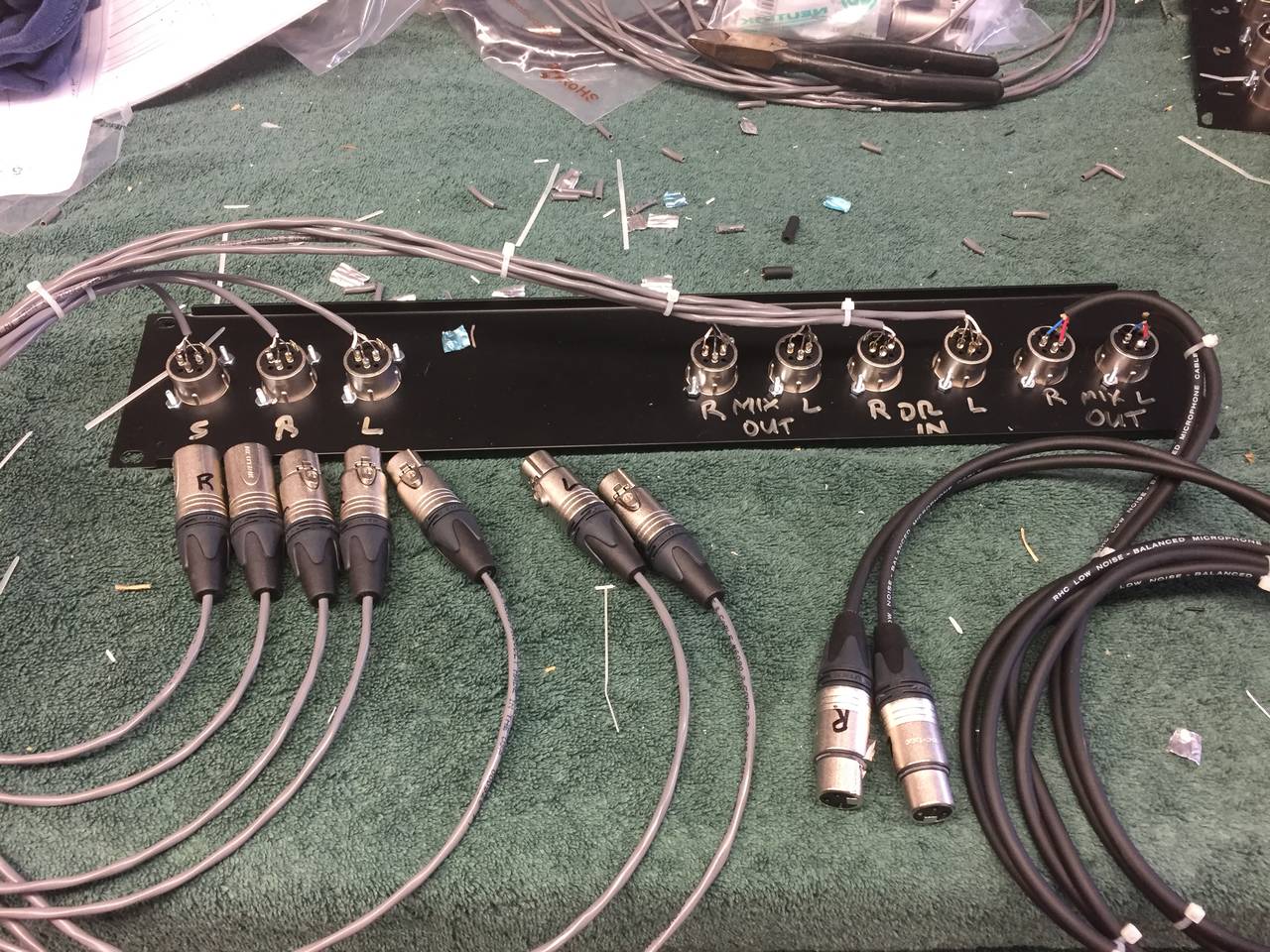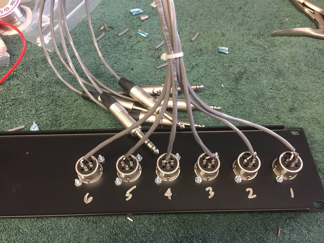 You'll notice that I'm using install wire. There is no reason to use rubber-jacketed mic cable inside a rack - it is harder to work with, takes up too much room, and is hard to bundle. The wires inside the install cable is the same as mic cable. I'm using 22ga - same a all of my mic cables.