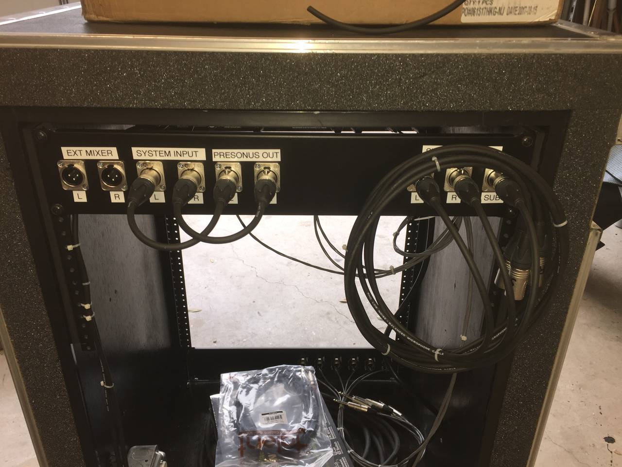 You'll notice the rubber-jacket cables on the far right. That is for connecting to an external mixer should they not use the rack mixer.