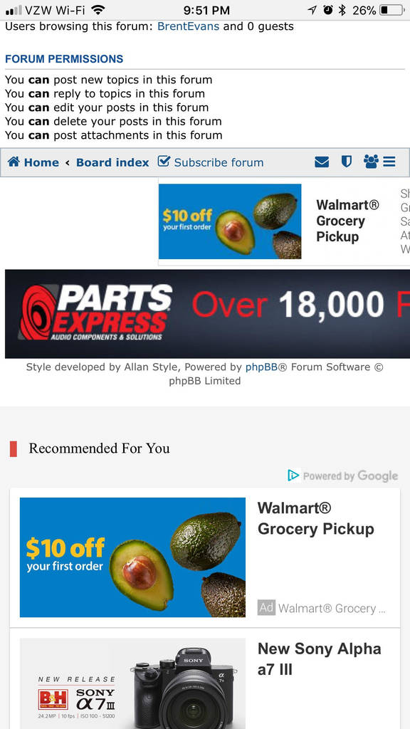 This is a new "feature" as of today. There are excessive ads appearing on all pages of the mobile version of the forum. I don't mind a banner ad or two, that's not a big deal. I'll sometimes even click through if it's relevant. I am assuming this is a glitch, because the ads are appearing in the middle of the page, and at the end for at least a screen or two. I use Chrome on iOS 11, if that matters.