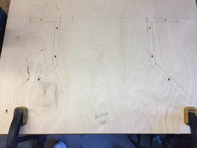 Drew the outlines as per the plans....On the top and the bottom. The top drawing is on the inside of the cab to better line it up when it's time to glue it up.
