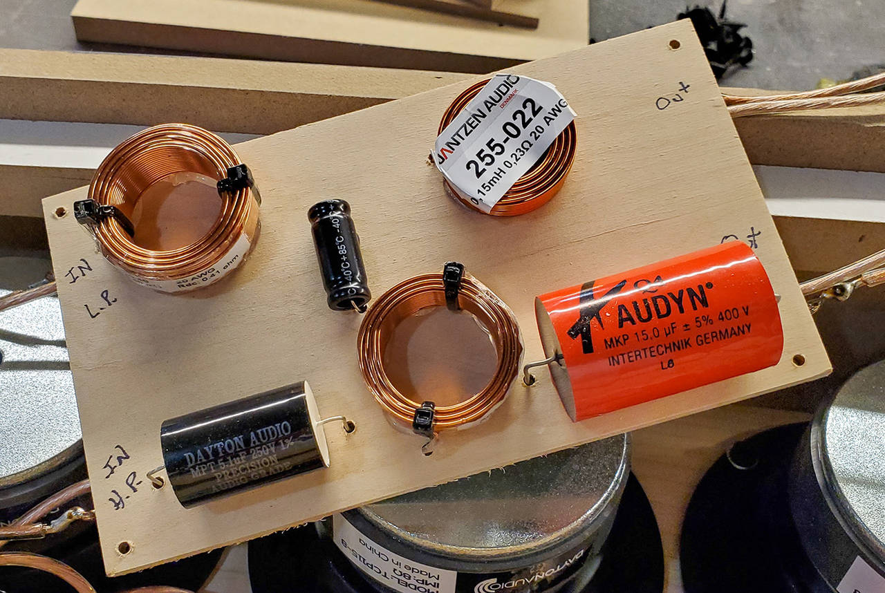 My first attempt at a crossover. All soldering was done on the back of the board, and it was mounted with #6 wood screws and small washers(between the box and the crossover board) as "stand-offs". Hope it's up to muster!