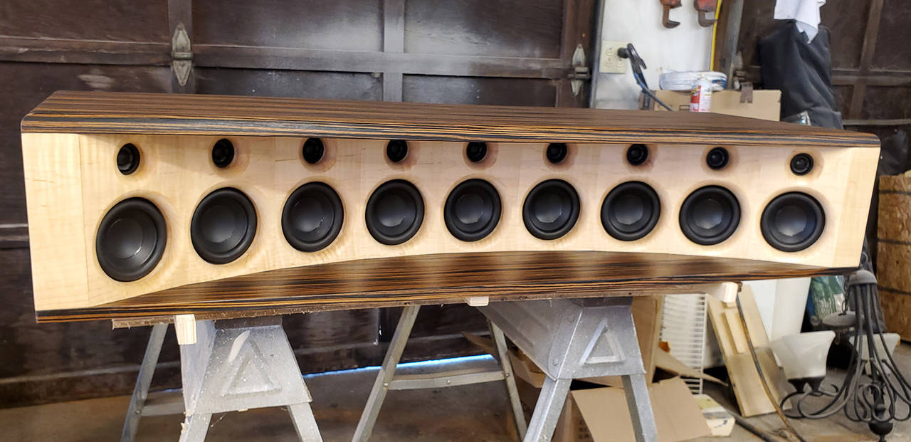 OK...ok. So I hooked them up last night(finally) and played around with the settings in my pre-amp to get them all ready to fire up. I am powering them with an Outlaw Audio 770 home theater amp. Signal is from an Outlaw Audio 990 pre/pro. It's an older preamp, but gets me through until I decide what I want next! I played a bunch of songs from the "Bill Fitz Hit List" in the forums, as well as some of my personal favs. My kids(drawn out by the sheer volume coming from the living room!) decided they wanted to re-watch Avengers Endgame. These 3 in the build are the L/C/R. I also have 3 Bose 501 as surrounds(Rear L/C/R) for now. Sub is a 30" wide THT with the 15" Dayton HO woofer. The......clarity of the front soundstage is AMAZING. Speakers are nowhere near broken in, and I'm already madly in love. Glad I decided to take this project on! I had a TON of pictures that I took of the build, but didn't want to bore anyone. If, for some reason, you have a question about the build- please ask!