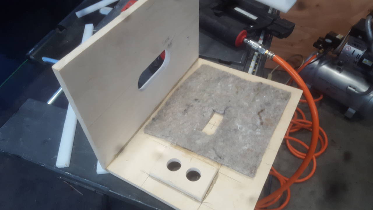 Didn't catch it until I mocked it up to the felt covered back. Other than that, I think it all went okay so far. Put the jack plate in, mounted a side to the back for both speakers, and attached felt with spray glue. It was later in the day when I caught my mistake. Was kind of burnt out, so I just disassembled and cleaned the pieces for tomorrow.