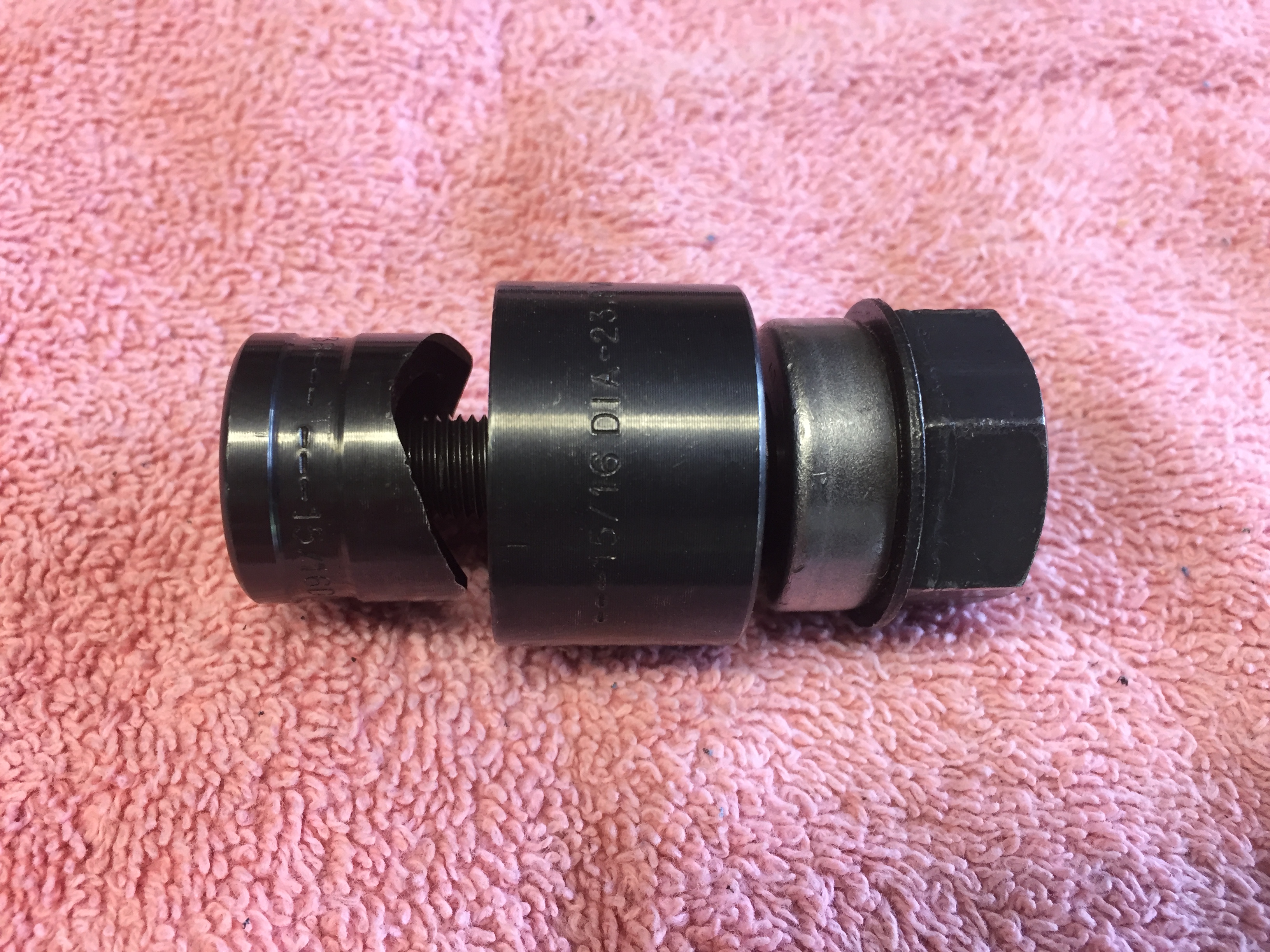 Those punches aren't cheap, but I wish I'd have bought one years ago. And getting a socket for it is worth it too. I went to Auto Zone to get a cheap socket. It's supposed to be 1", but these are cheap sockets (8 bucks) so it was a little sloppy. So, I went to the metric ones and tested until I found a good fit. 25mm did it. With that in my impact driver, it was one more of those "AHA!" moments. Because it takes just a little over 6 turns with a big crescent wrench......and that gets tiring when you do a bunch of punches.