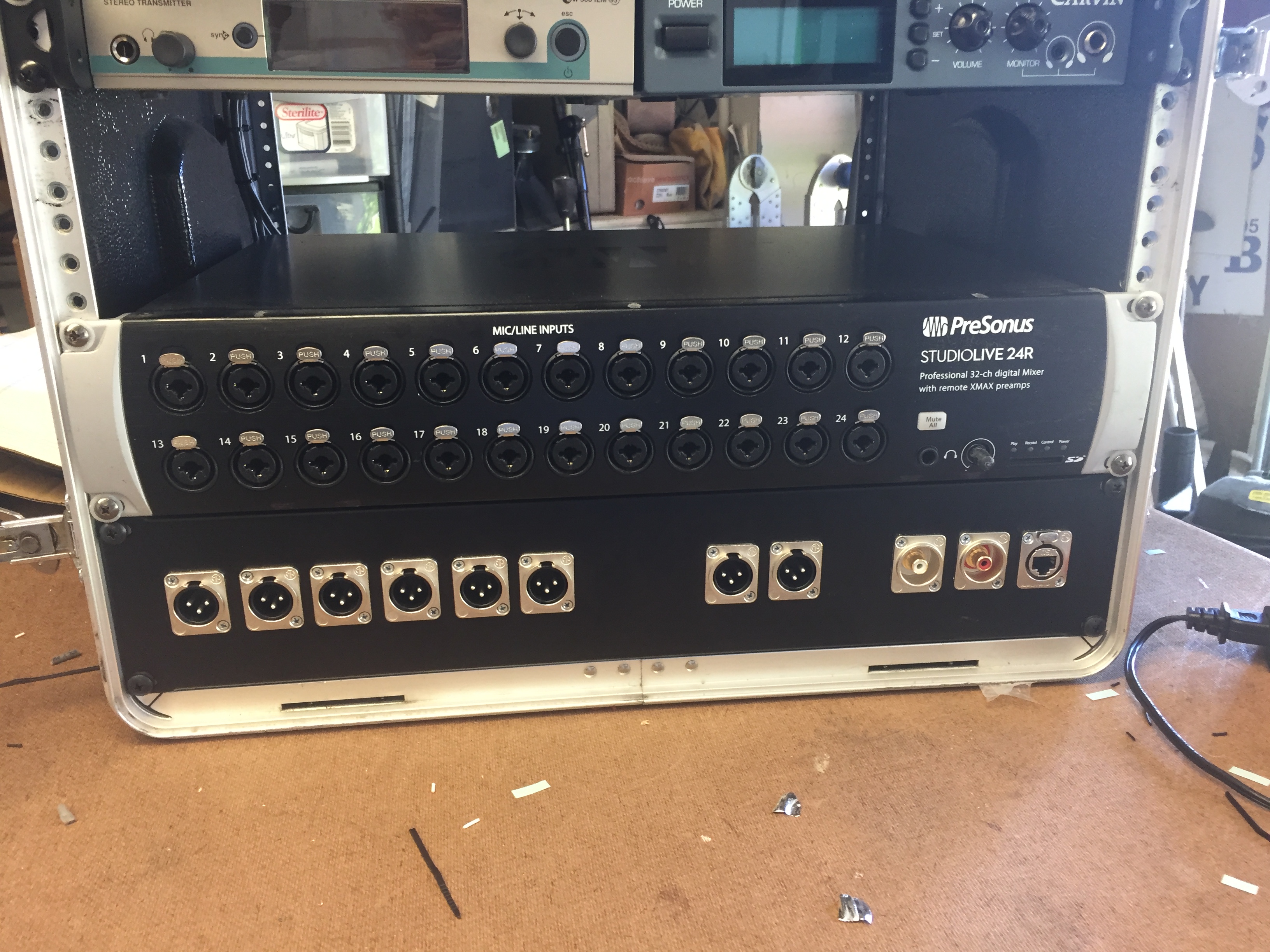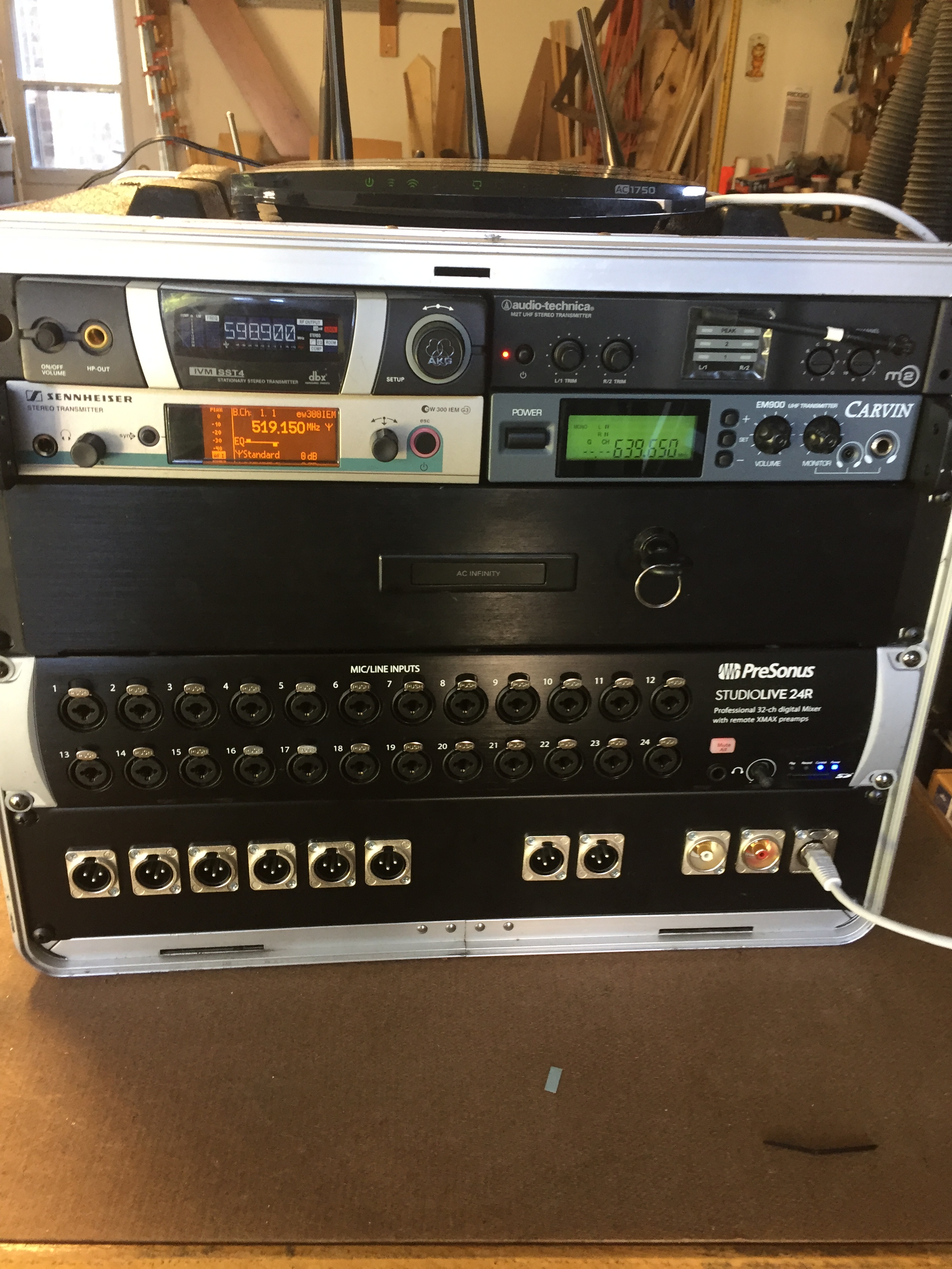 I've mixed his band off and on over the last few years and I've told 'em for about that long that I'd put a panel in their rack to alleviate all the crap and problems they have setting up ..... having to shine a flashlight in the back to get to the correct Aux outs, Main outs, Music input, and the router connection. They also had a couple of in-ear units in there, only one was getting used.