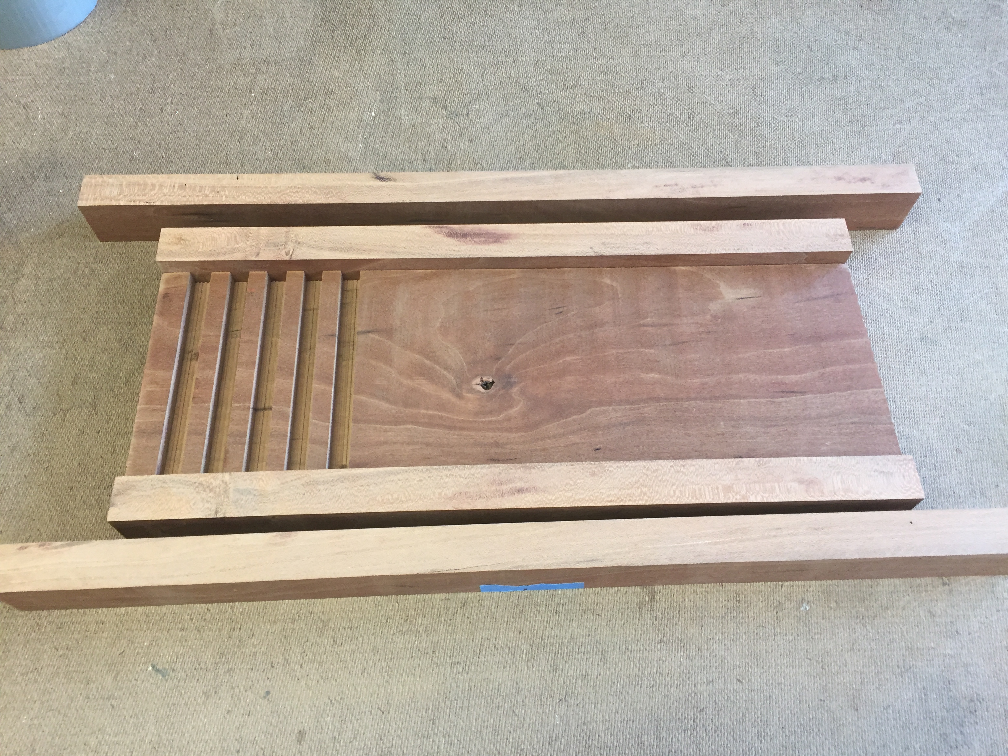 That was the easy part.....a whole bunch of time and head-scratching went on between the first picture and this one where the holes are drilled, the pivot points are set, edges are rounded over, and the sanding it done.