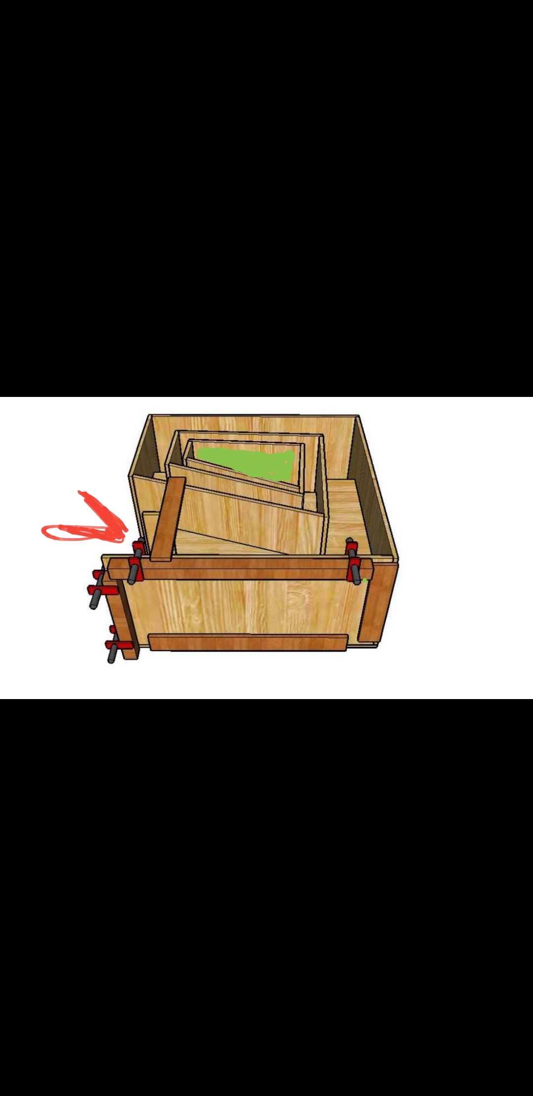 Here is the main opening on the TT listed on the sales page. It is a little hard to see but makes sense once you see the plans. The driver acess is in the middle, here i have highlighted it in green. It is only open on one side. So on the sales page, the sub is flat on "top" with the driver acess opening facing down.
