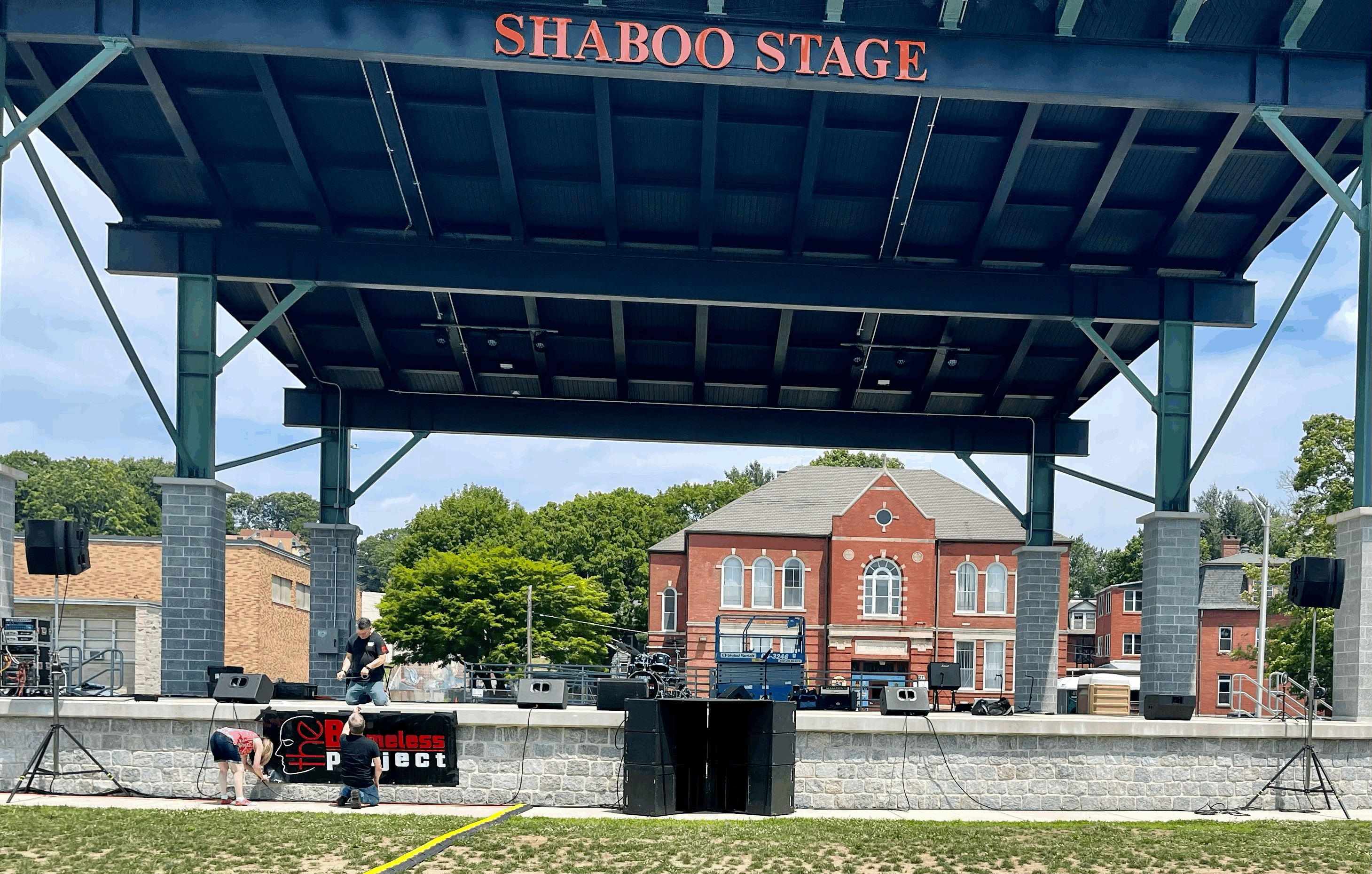 I have a concert tomorrow that has a concrete stage in a park. The face of the stage is approximately 5' high and the stage is quite wide (I'm guessing close to 65' across).