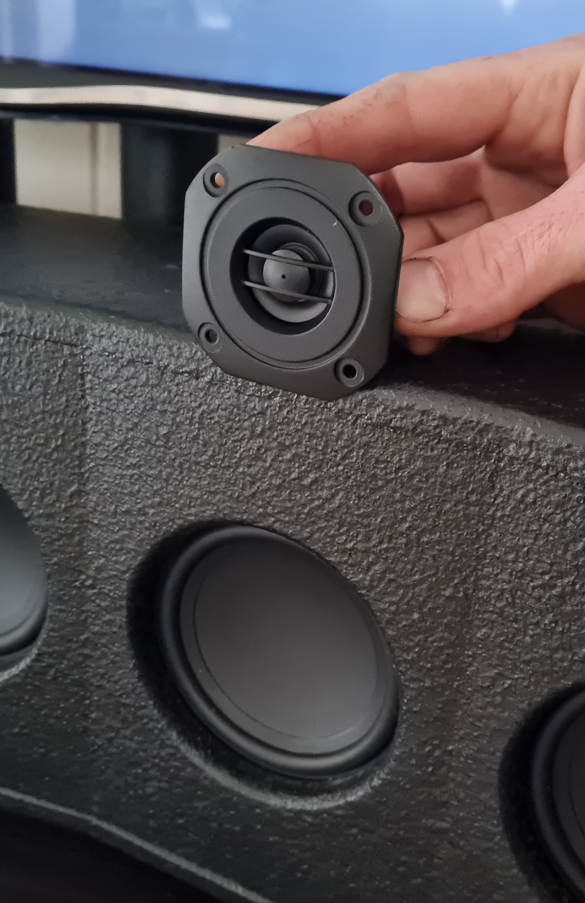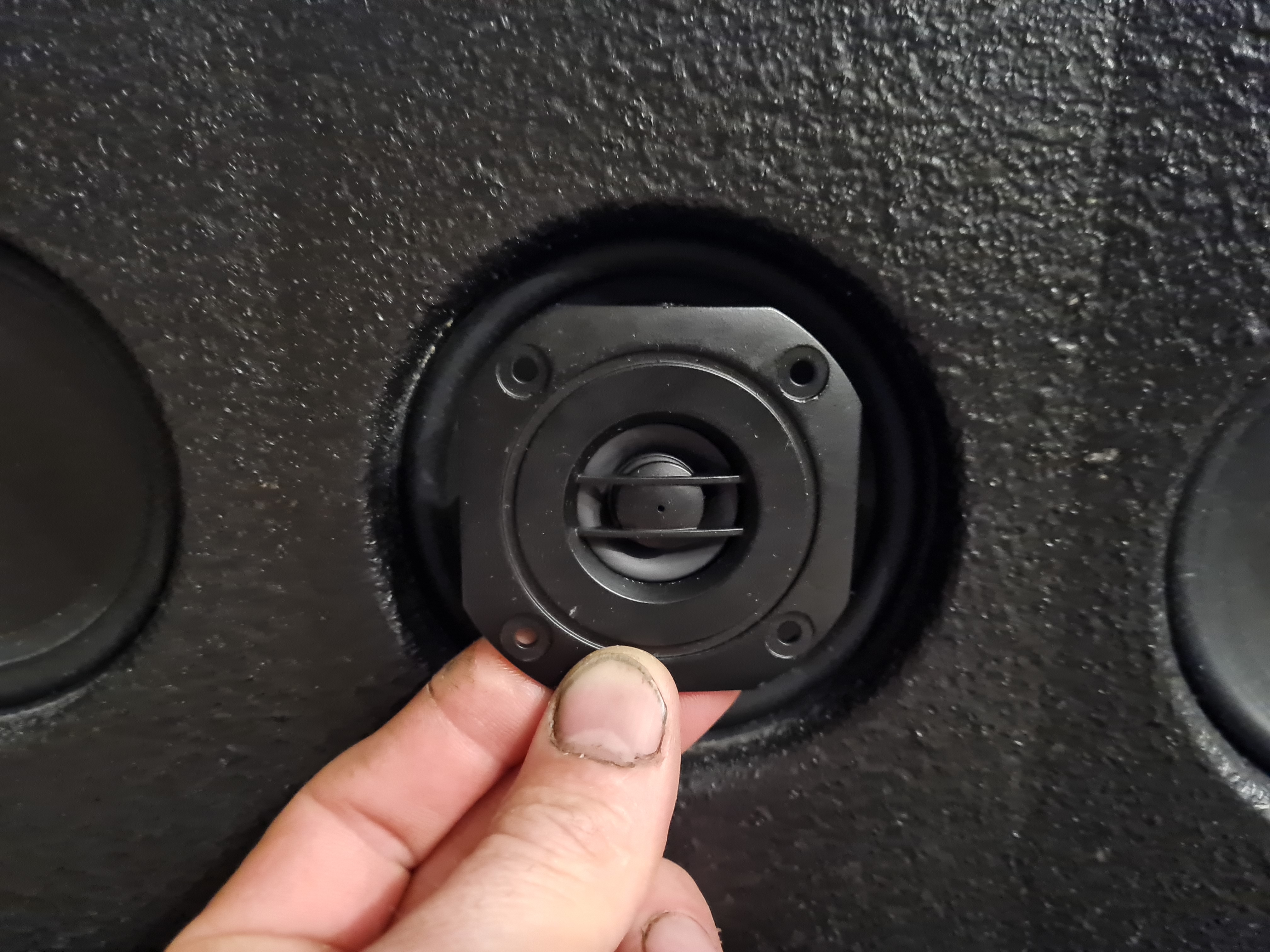 - Router filler discs, glue them in the existing driver cutouts, fill any voids with Bondo, sand flush, relocate the cutouts lower, allowing the tweeters to be mounted above. Still way less work than building one from scratch.