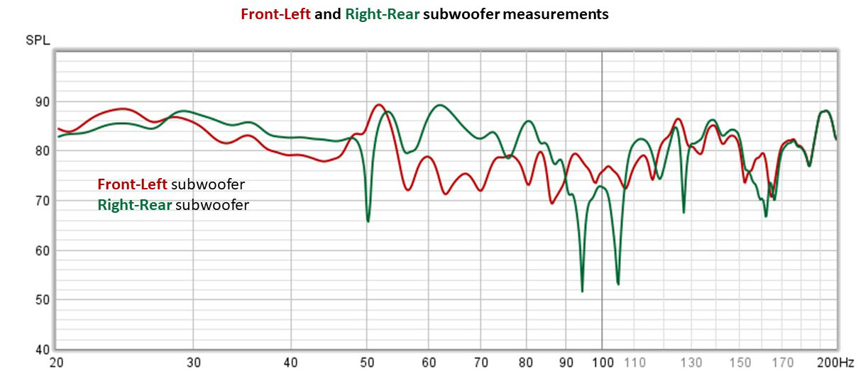 This shows how each subwoofer measures individually when the other subwoofer is muted: