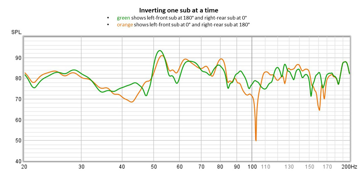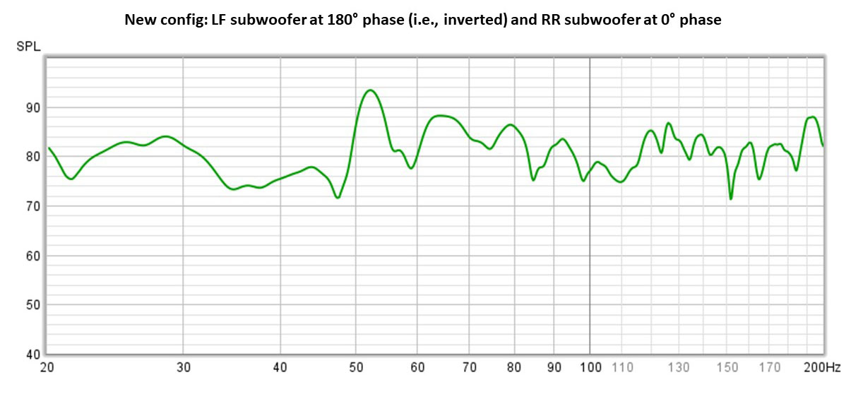 Based on that data, I have changed my subwoofer configuration so that the LF sub is inverted (i.e., phase at 180 degrees) and the RR subwoofer is as 0 degrees.