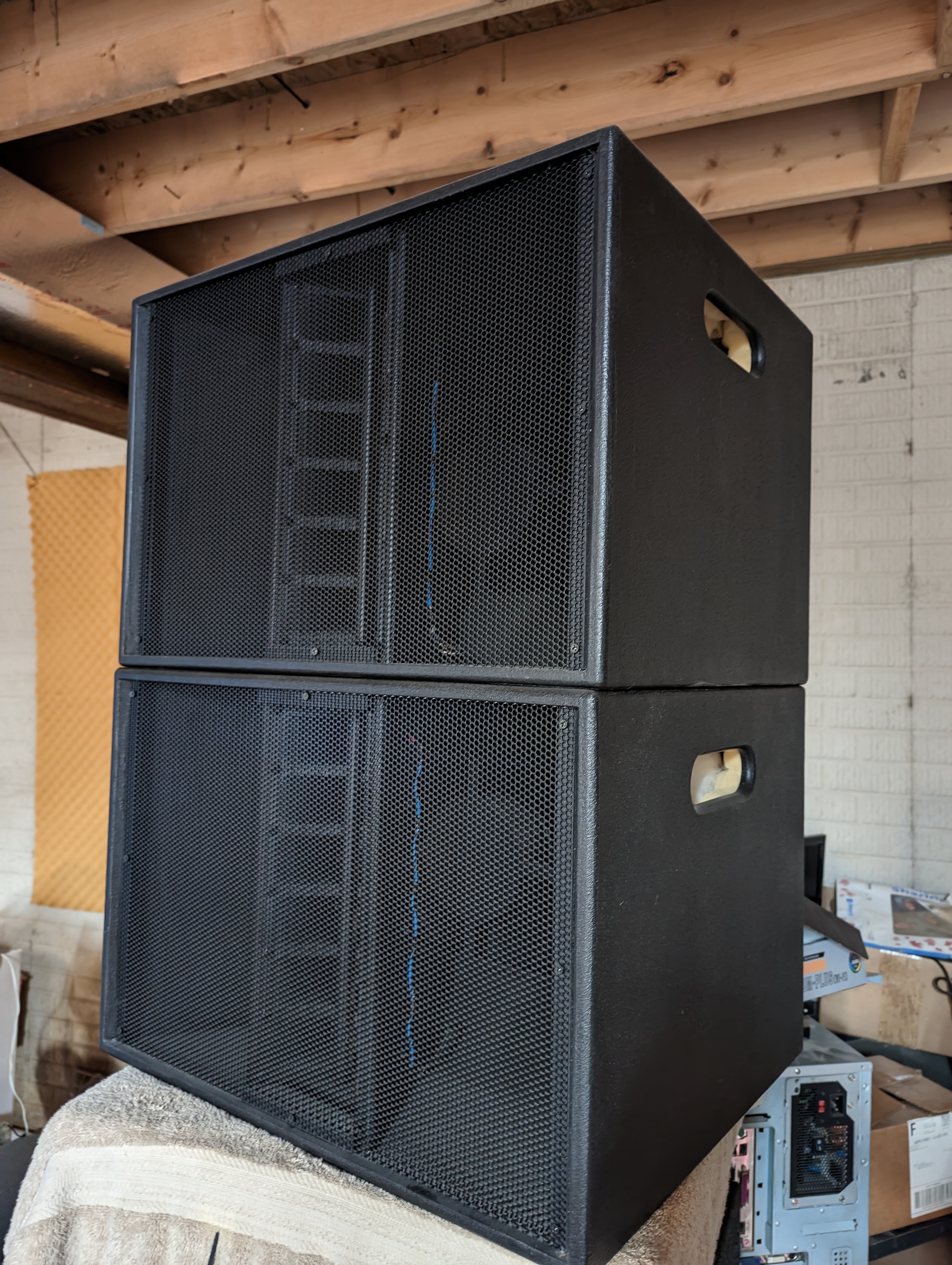 Selling four OmniTop 12's. I originally built these for a church where they were in use for about 2 years. They built a much larger building and went with line arrays, so I bought these OTops from them. They work great and are still in excellent condition. There are 3 removable attachment points on each cabinet because they were built to hang individually from the ceiling. I'd love to keep them, but I haven't done any live sound work for 3-4 years and hate to see them not used. They've been stored in my basement.
