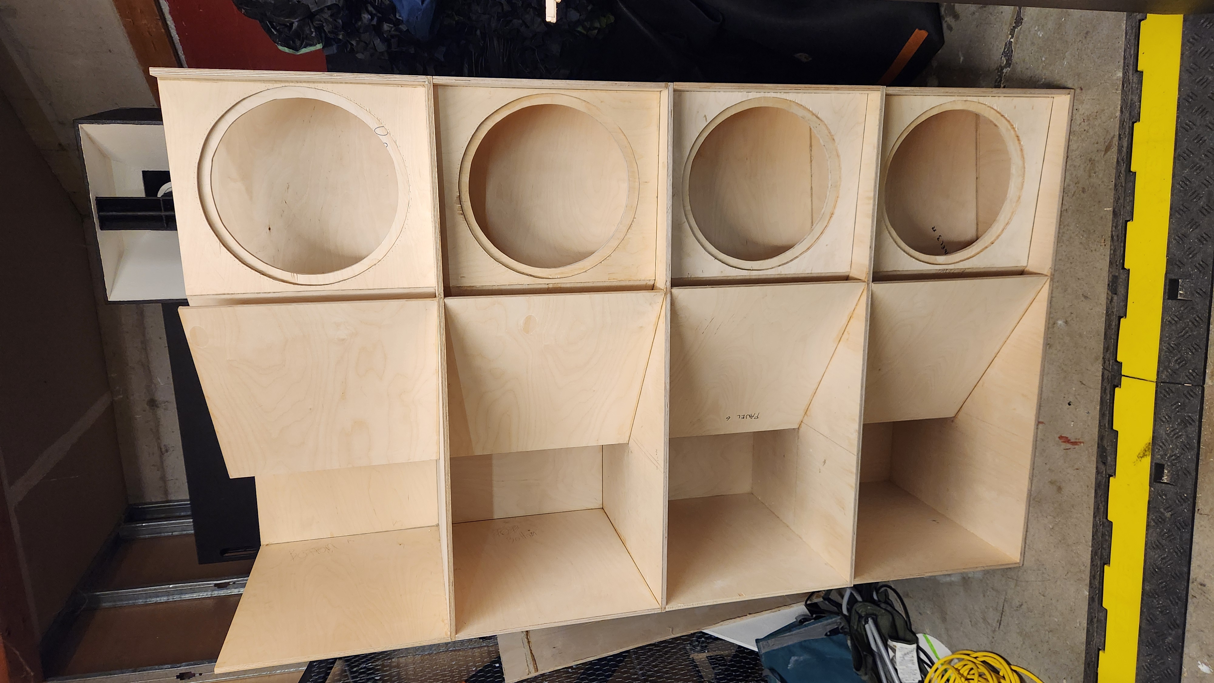 Welp, cats out of the bag now so I can actually talk about it, but I have been hired to design the sound system for a brand new mainstream club opening here in Seattle this summer. After some demos the club decided they really like our T48s and wanted some of their own. After some space consideration, and nearly destroying the business upstairs' bar with boundary loading against a shared brick wall, we settled on building them 4 15sw2000 loaded 20" t48s (not wall loaded πŸ˜†πŸ˜†πŸ˜†).