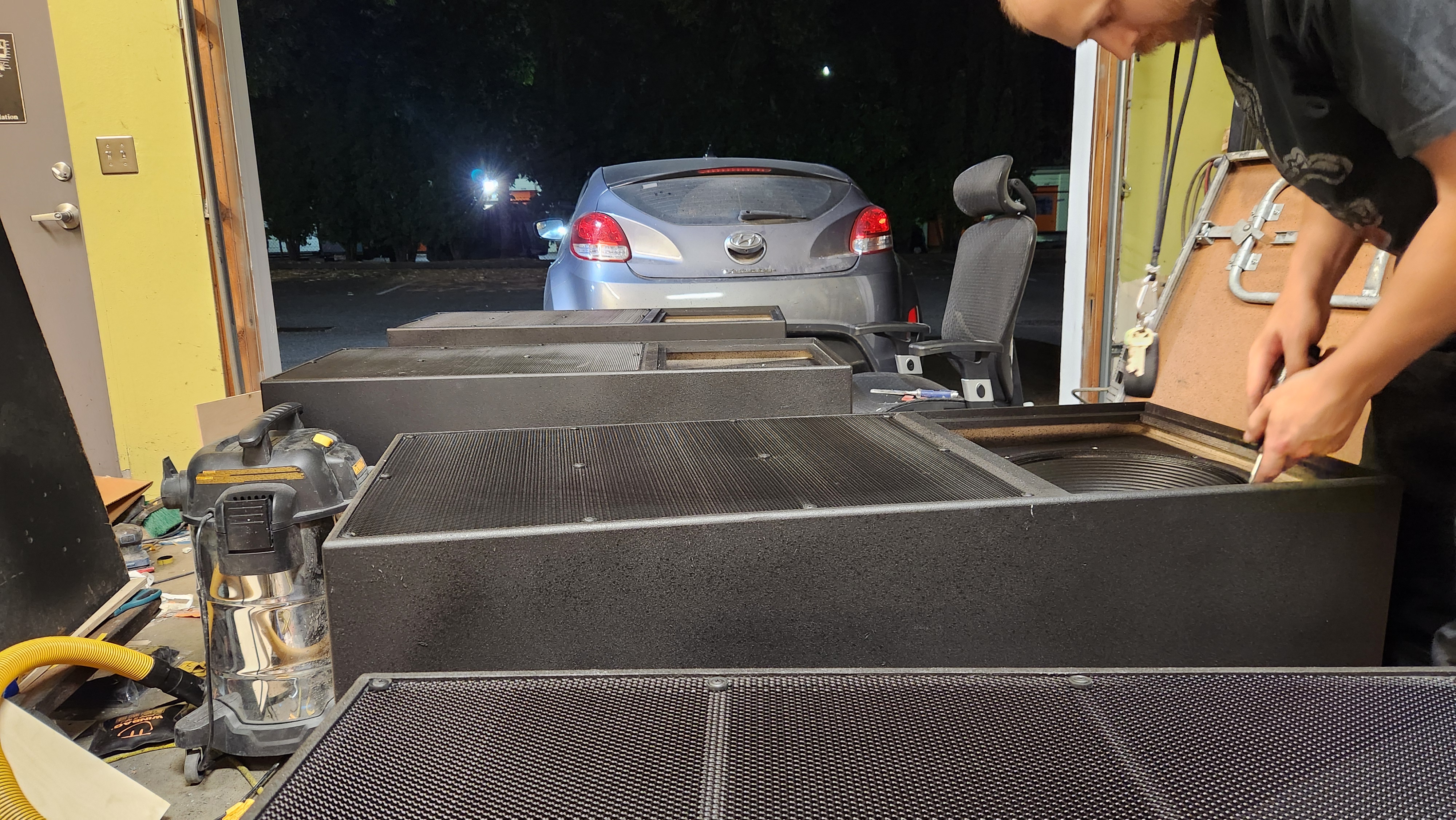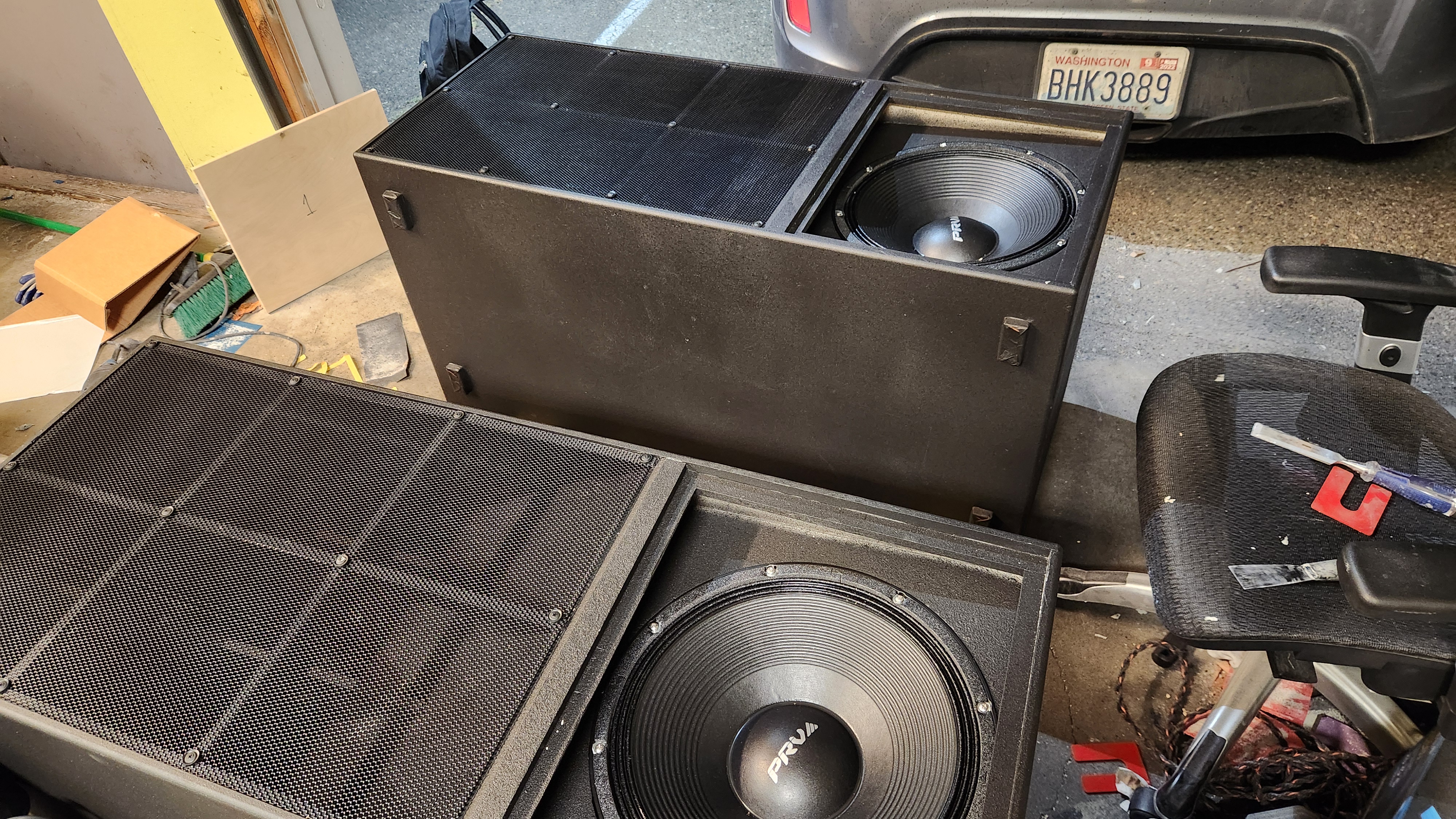 That's before we even get to the SUBS! Those 20" prv titans are monsters! And they're comically small. They are much louder than 4 24 inch 3015lf titans and practically blend in with the stage. That was as much sound as this 450 cap venue could handle and we didn't even boundary load this time. We walked outside and the security said "damn you are fucking this block UP right now" πŸ˜†πŸ˜†πŸ˜† the grilles from reliable hardware turned out SO nice too! We sandwiched them between truss head screws with rubber gromits and gasket tape, reinforcing the mouth so as to support the grille. These boxes turned out crazy good, no rattling from the grilles, they look phenomenal and sound even better. People were shining flashlights in them and admiring build quality pretty much right away.
