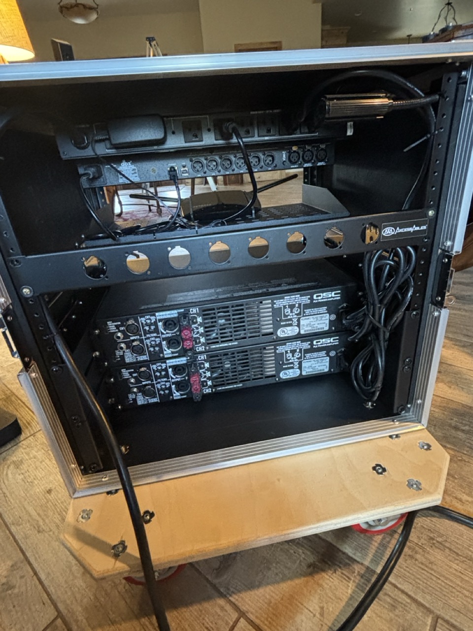 Amp rack has wheels now and I just need to wire it up. I'll paint the caster board when I do the speakers.