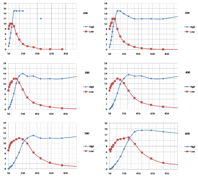 Seems like the crossover is working but is not very accurate above 100 Hz or so. As I increased the dial from 100, 200, 300, 400, 500, 600, the crossover increased from 100, 125, 175, 225, 275, 325. Also seems like the slope is sorta shallow but I have not calculated it yet (not exactly sure how). At any rate, it seems like an awful lot of the frequencies I will be playing on bass will be provided by both the top and bottom cabs and I'm not sure how that will affect the clarity or sound.