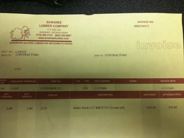 Just a tip - Suwanee Lumber has 5x5 sheets of 7 ply BB for $19.50 each. My buddy went to pick up a couple sheets and brought in the invoice... I thought I paid $22.50 for mine, but I went back and checked my receipt and apparently they rang me up for $19.50, as well.